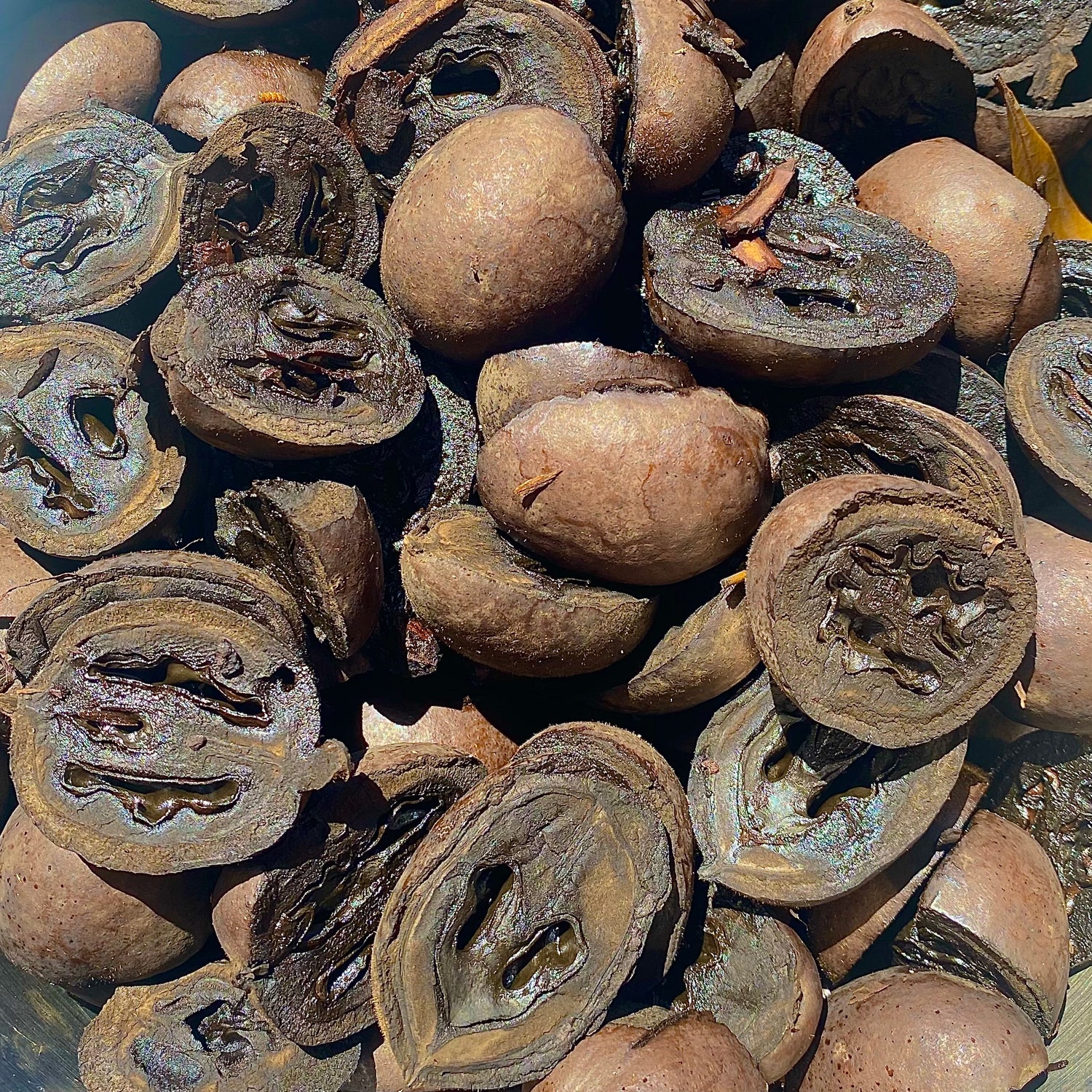 Raccogliamo a mano le noci alle falde del Vesuvio. Non sono presenti aromi sintetici, zuccheri caramellati, noci secche, in polvere, o qualsiasi surrogato diverso da malli di noce freschi.